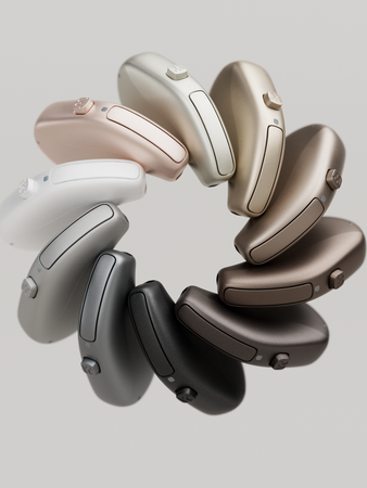 Hoortoestellen zijn er in allerlei kleuren en stijlen, van subtiel en discreet tot stijlvol en opvallend. Samen met u kijken we zorgvuldig welke kleur en uitvoering het beste bij u past. Zo zorgen we ervoor dat dat uw hoortoestel perfect klinkt, maar ook perfect staat.